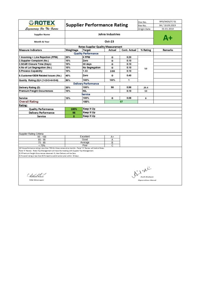 OUR CUSTOMER RATING